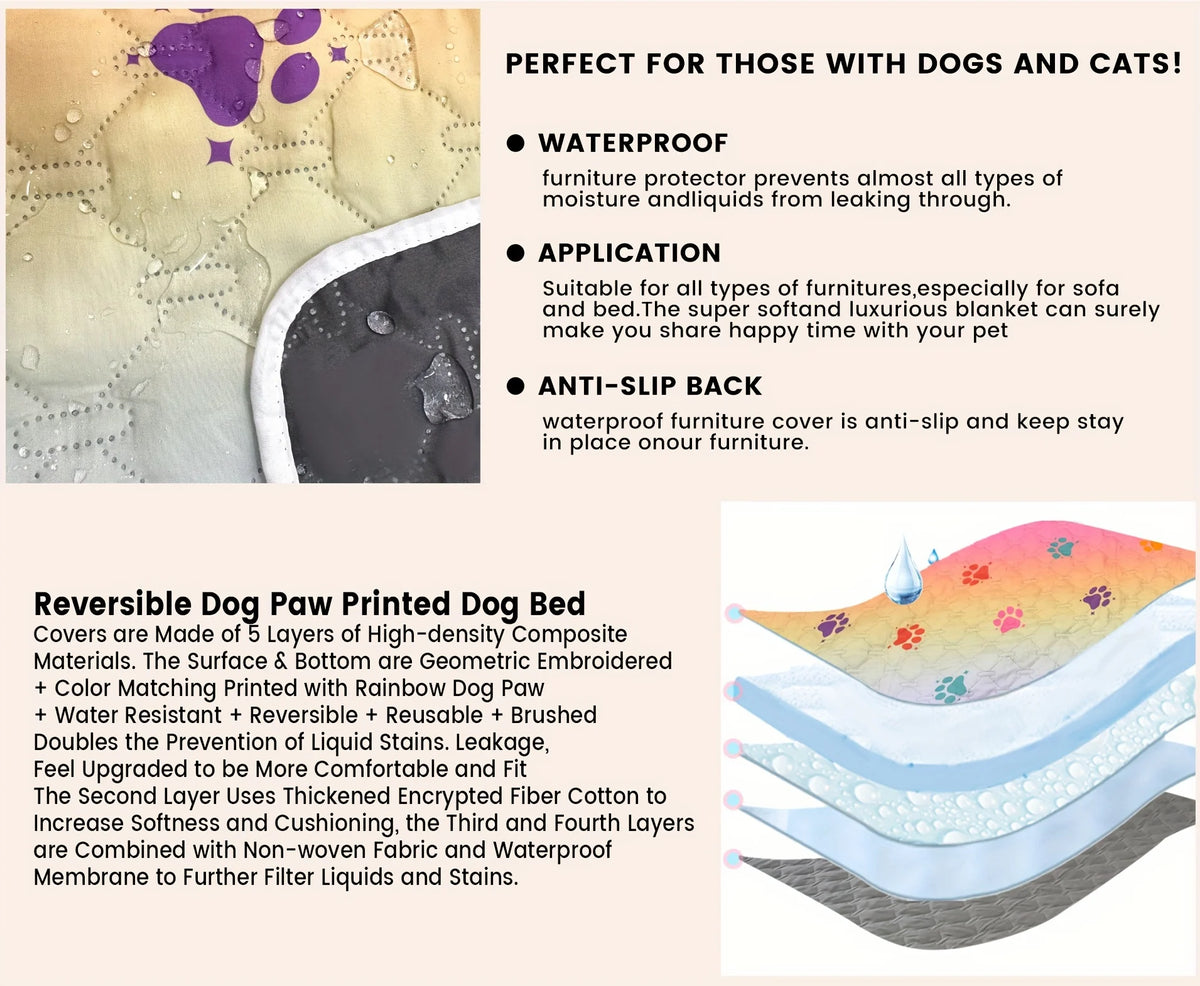 🐾 Leak-Proof & Reversible Design: Dual-sided use with high-quality waterproof backing to protect furniture, beds, or floors.