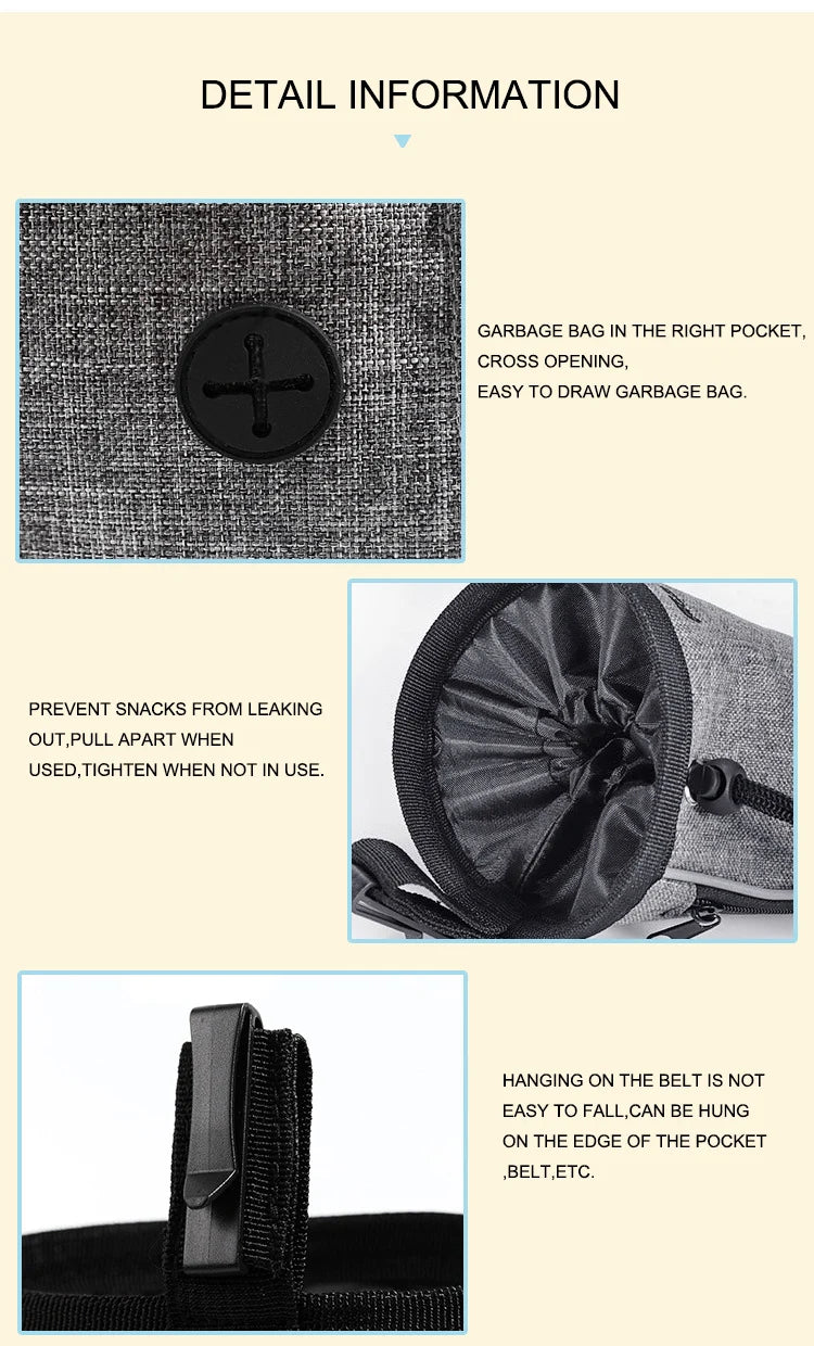 Dog Treat Training Pouch with Built-in Poop Bag Dispenser โ€“ Outdoor Pet Training Bag for Toys, Kibble & Treats - Grey Bag
