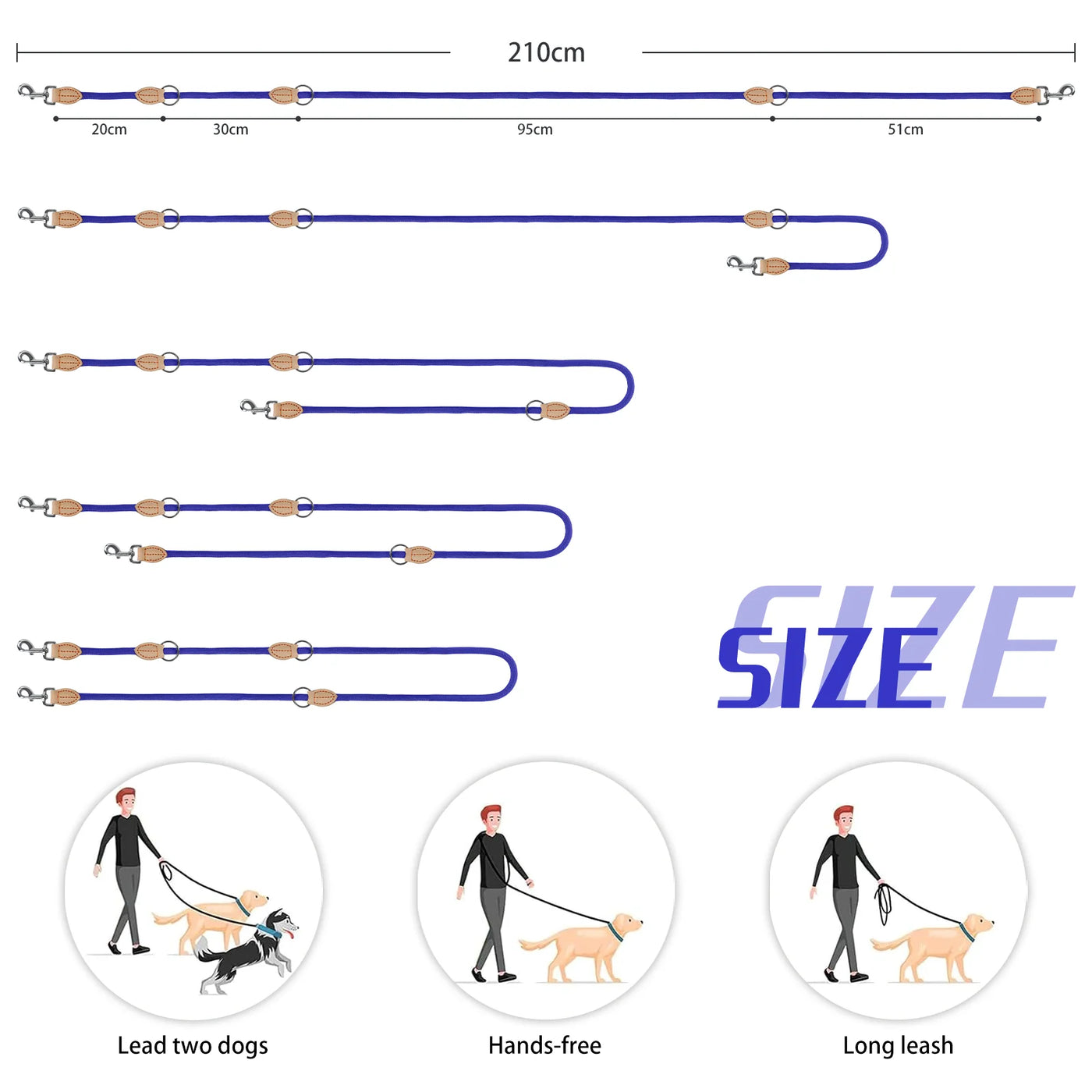 Inform when this item available 🐕🦺 210cm Multipurpose Adjustable Double Dog Leash – Hands-Free Luxury Nylon Leash for 2 Small/Medium Dogs