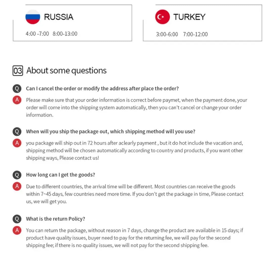 Ex: Shipping and return policies, size guides, and other common questions.