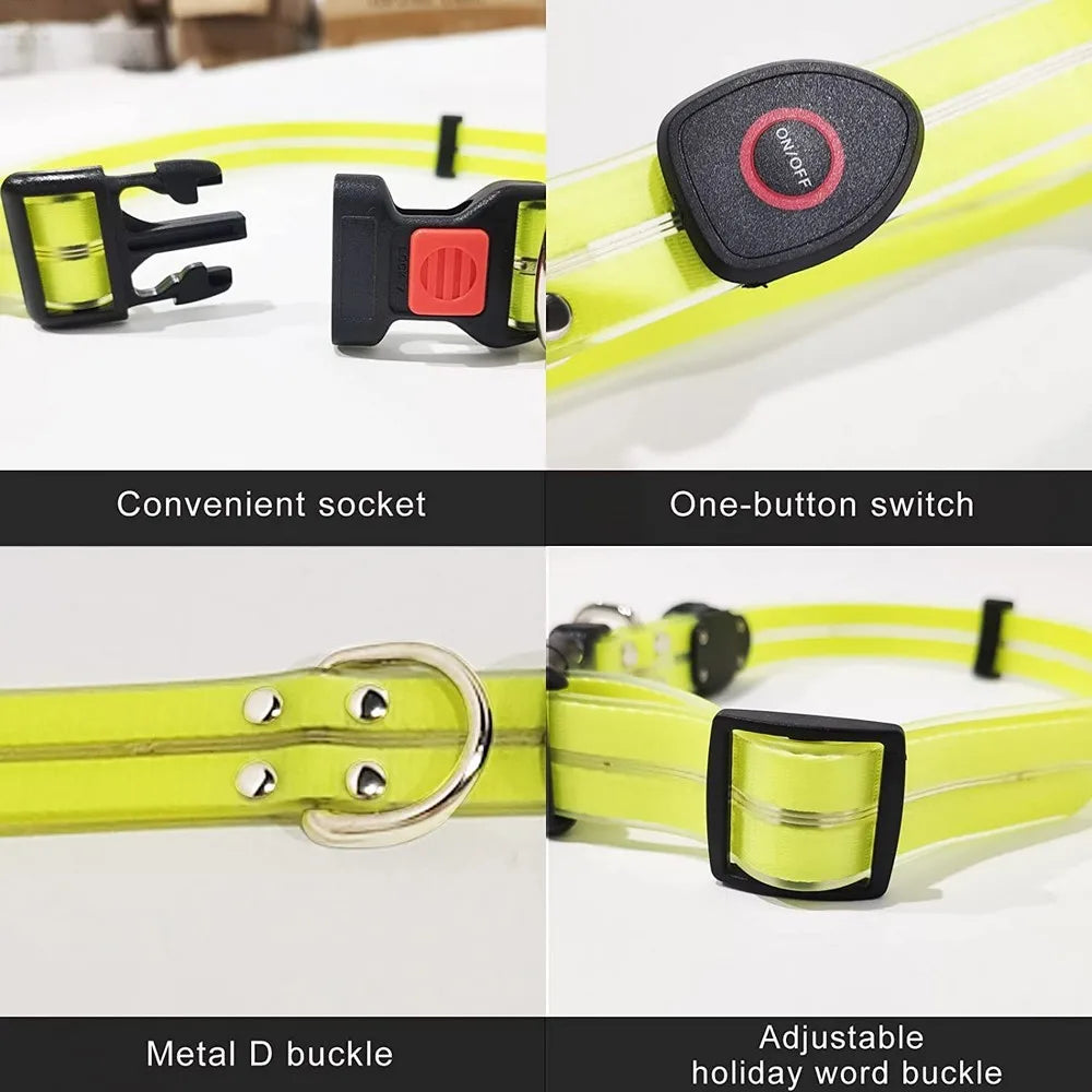 π LED Light-Up Dog Leash β USB Rechargeable, Glowing PVC & Webbing Design for Night Walks