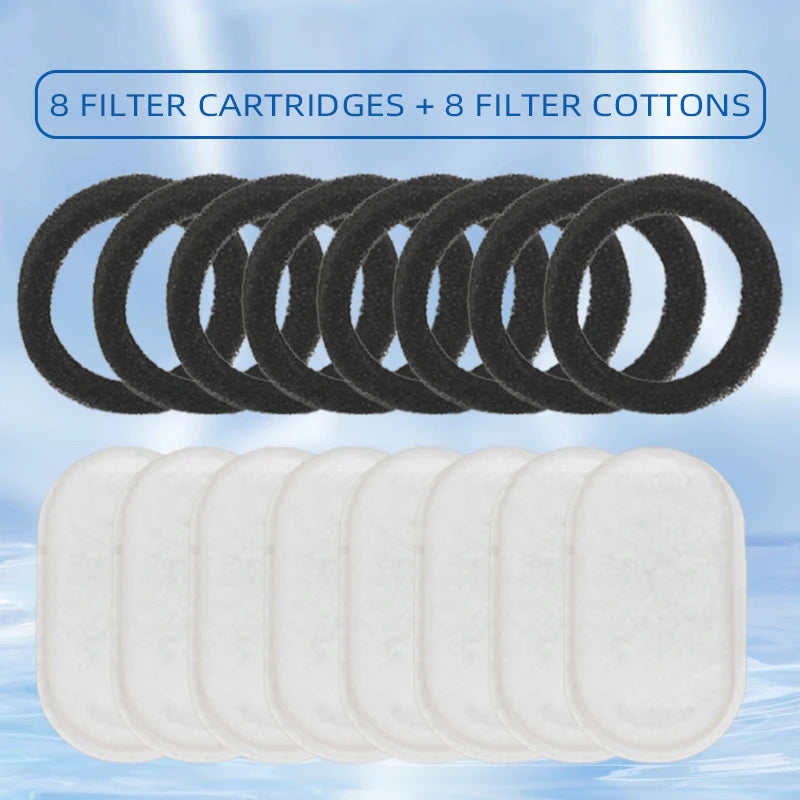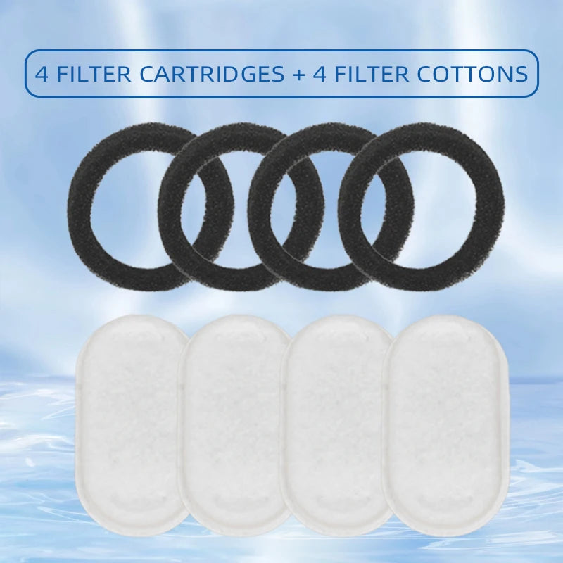 🧽 Dual Filtration System – 4 carbon filters + 4 foam filters for fresh, clean water