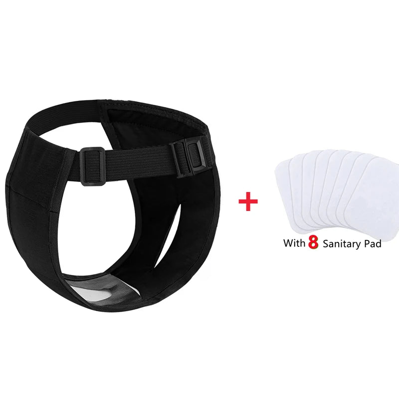 Female Dog Washable Diaper Pants โ€“ Anti-Harass Heat Nappies with 8 Pads - Black / XXL
