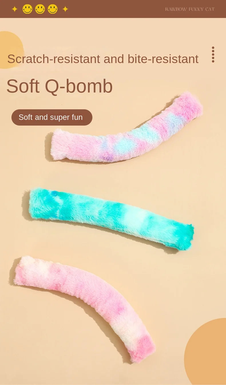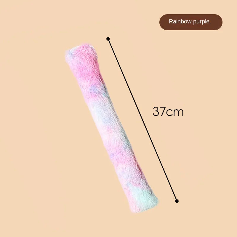 Soft plush catnip kick sticks designed for interactive play and chewing.