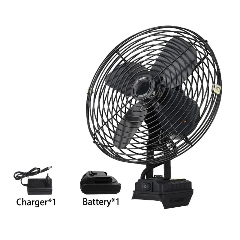 10000/20000mAh Wireless Camping Fan – 6-Inch Portable Outdoor Metal Fan for Fishing, Travel, Desktop Use – Compatible with Makita 20V Battery - No Battery