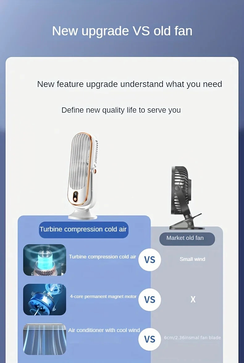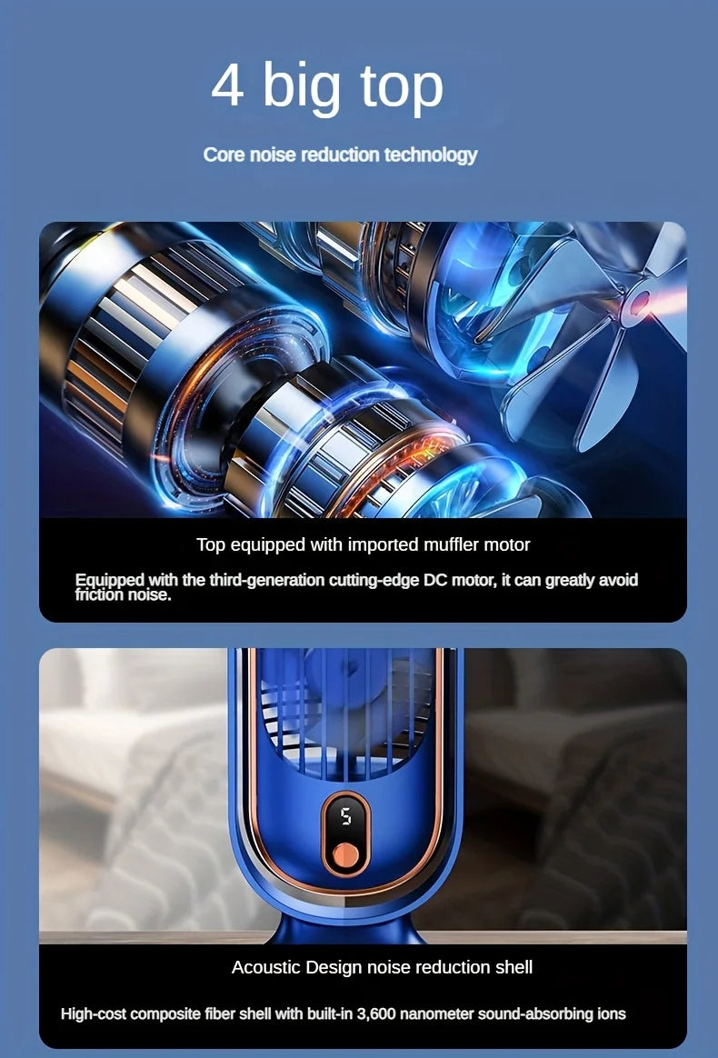 ❄️ 1PC Portable Air Conditioning Fan – 5-Speed Air Cooler with Large Battery, Dual Electric Motors, 720° Surround Cooling - Charging Blue