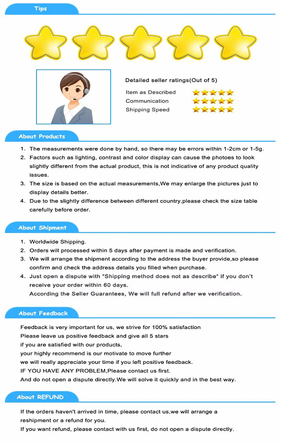 Ex: Shipping and return policies, size guides, and other common questions.