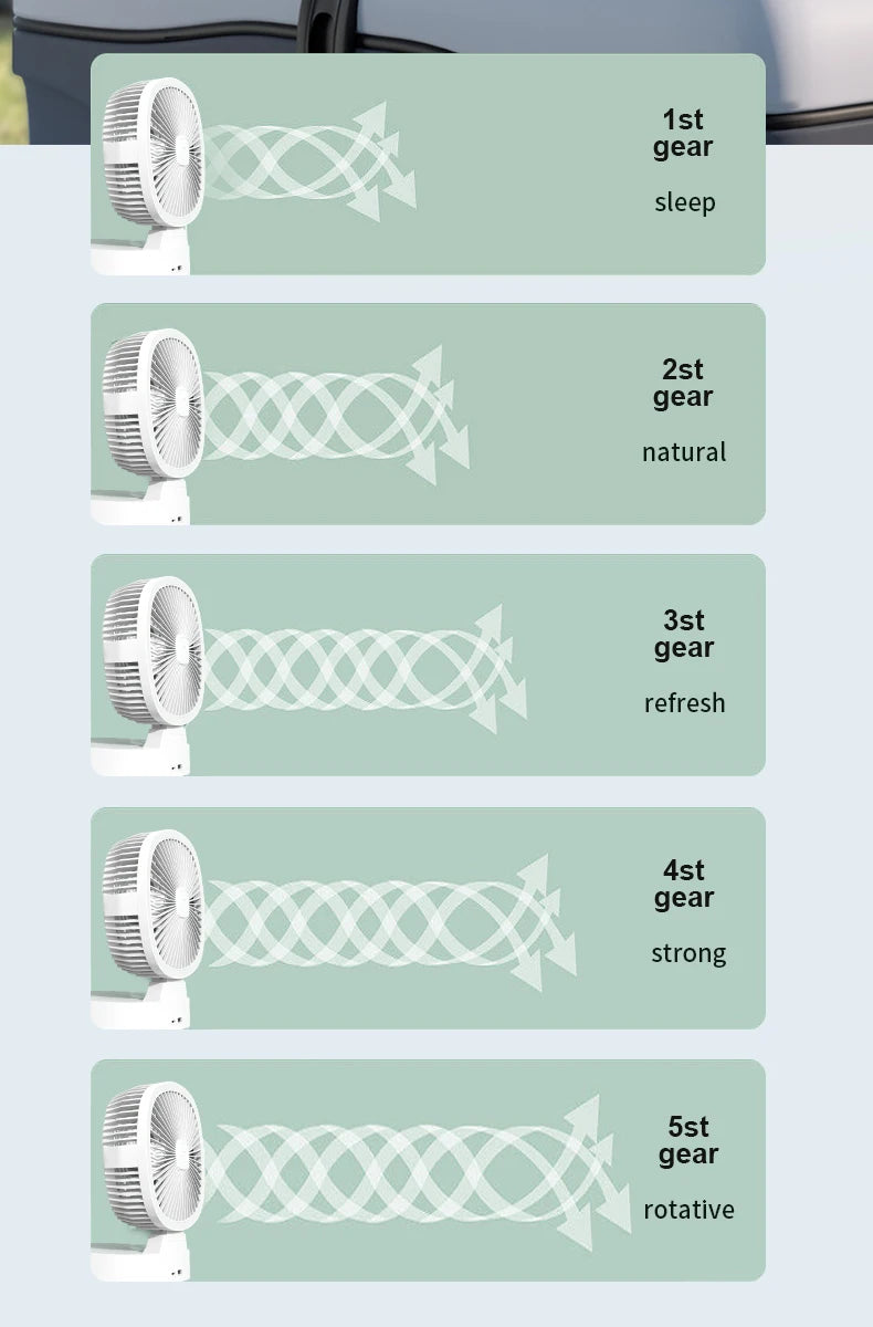 Outdoor Solar Camping Fan – 5 Speeds, LED Light, USB Rechargeable & Power Bank Function, Quiet Portable Electric Fan - USB Charge Only